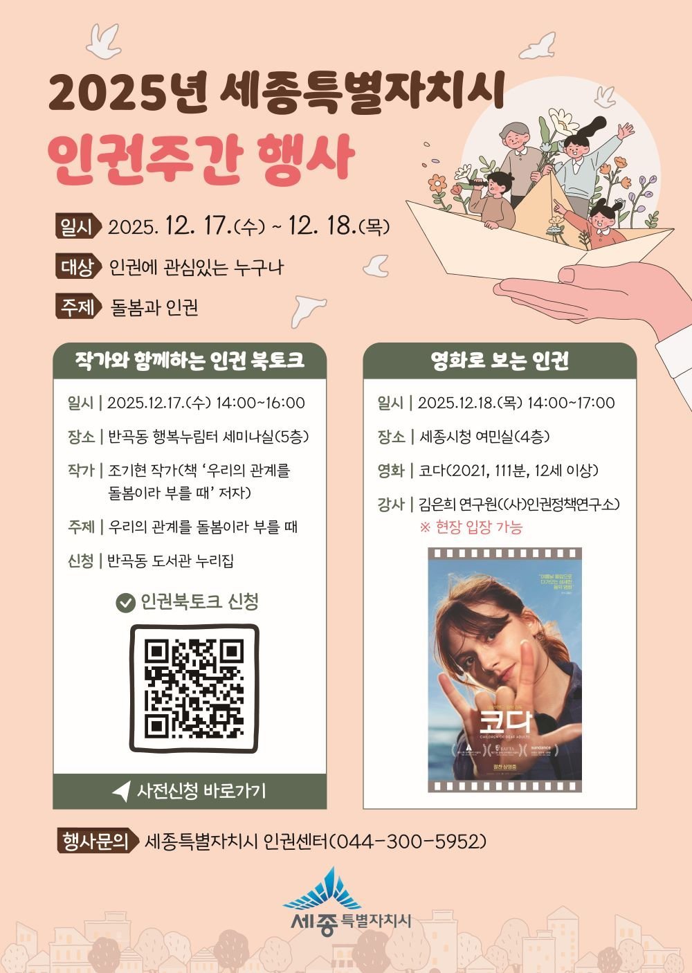[세종타임즈] 세종특별자치시가 12월 10일 세계인권선언기념일을 맞아 지역 사회 인권문화 확산을 위해 오는 17∼18일 ‘2025 세종시 인권주간 행사’를 개최한다.