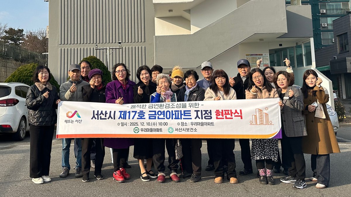 [세종타임즈] 서산시는 10일‘우리마을아파트’를 금연아파트로 지정하고 현판식을 개최해 공동주택 내 간접흡연을 예방하고 건강한 생활환경을 조성하겠다는 의지를 밝혔다.