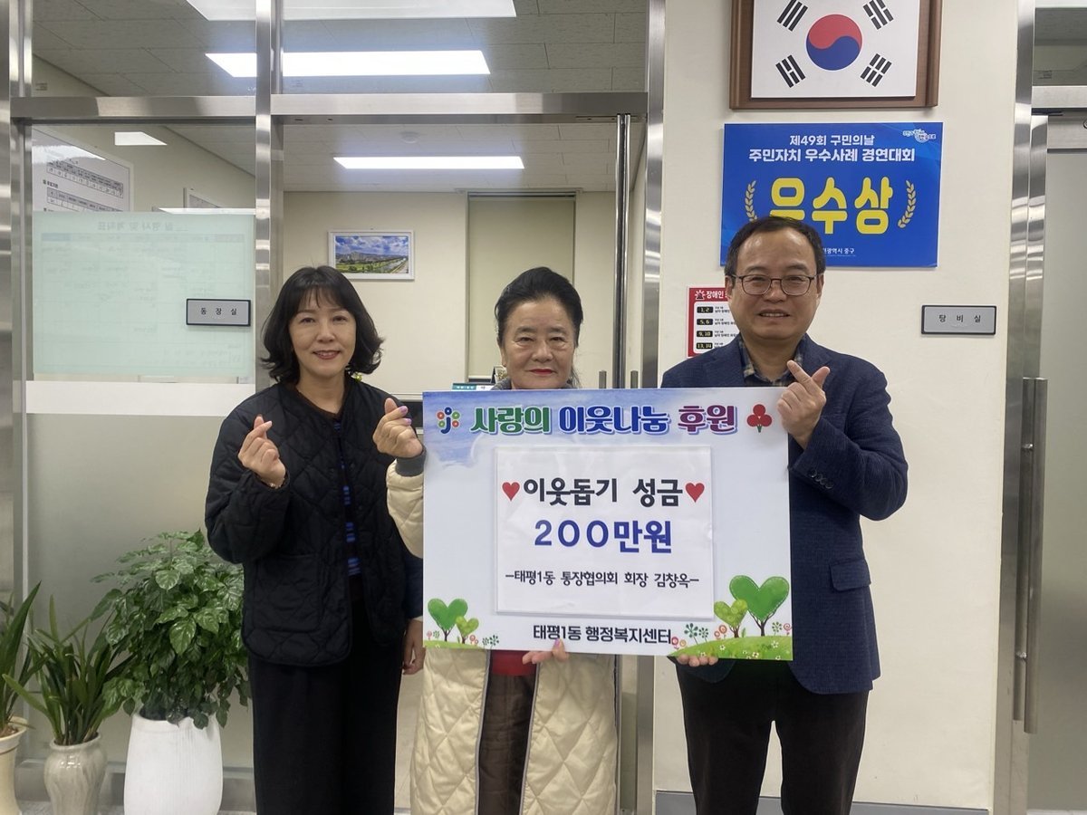 박상롱 동장은 “꾸준한 후원은 단순한 금전 기부를 넘어 지역 주민 간의 연대와 공동체 의식을 되살리는 소중한 실천이다”라며, “이러한 선한 영향력이 지역사회 전반으로 확산되어 태평1동의 겨울을 더욱 따뜻하게 만들기를 기대한다”라고 밝혔다.