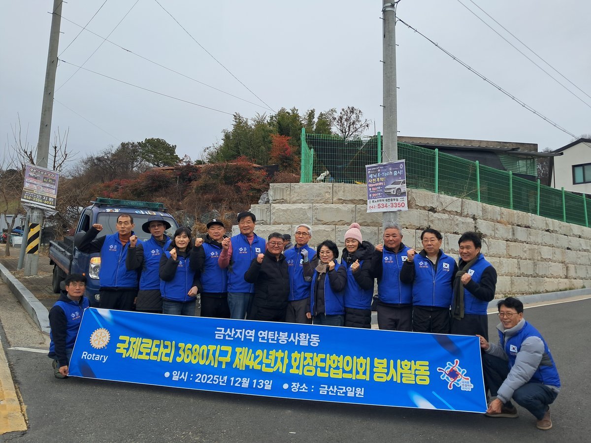 [세종타임즈] 국제로타리3680지구 42년차 회장단은 지난 13일 금산군 금산읍의 어려운 이웃을 위해 연탄나눔 봉사에 나섰다.