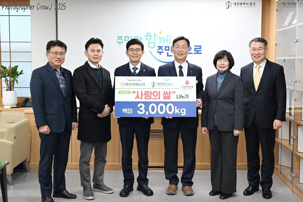 [세종타임즈] 대전 중구는 지난 15일 대전원예농협으로부터 연말 취약계층 지원을 위한 백미 3000kg을 기탁받았다고 밝혔다.