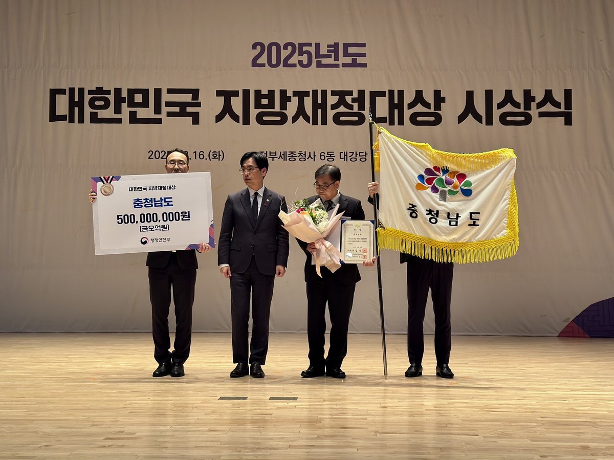 [세종타임즈] 충남도는 16일 정부세종청사 대강당에서 열린 ‘2025년 대한민국 지방재정대상 시상식’에서 국무총리상을 받아 재정 인센티브 5억 원을 확보했다.