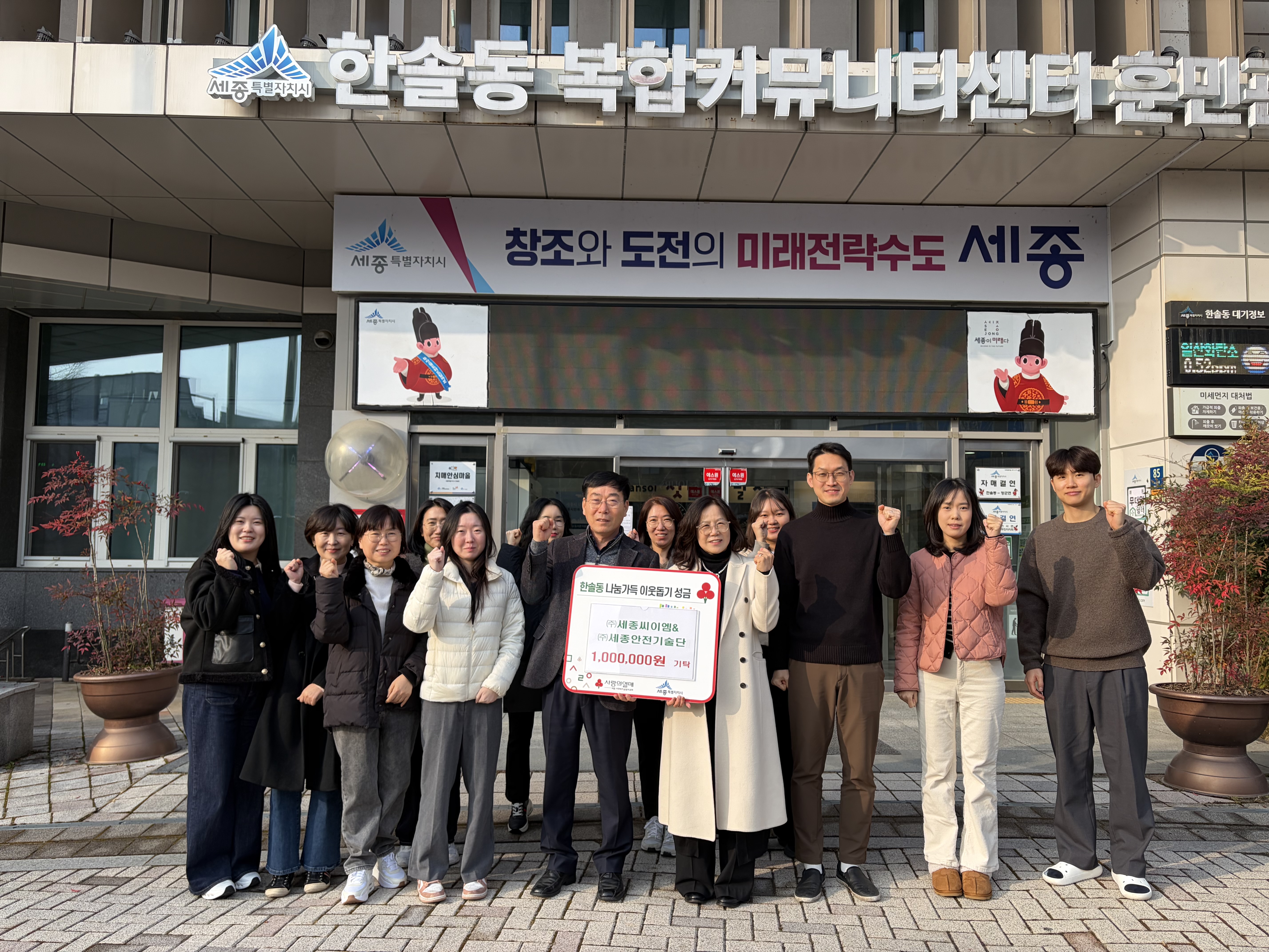 [세종타임즈] 세종특별자치시 한솔동이 17일 지역 기업 ㈜세종씨이엠, ㈜세종안전기술단에서 이웃돕기 성금 각 50만 원을 전달했다고 밝혔다.