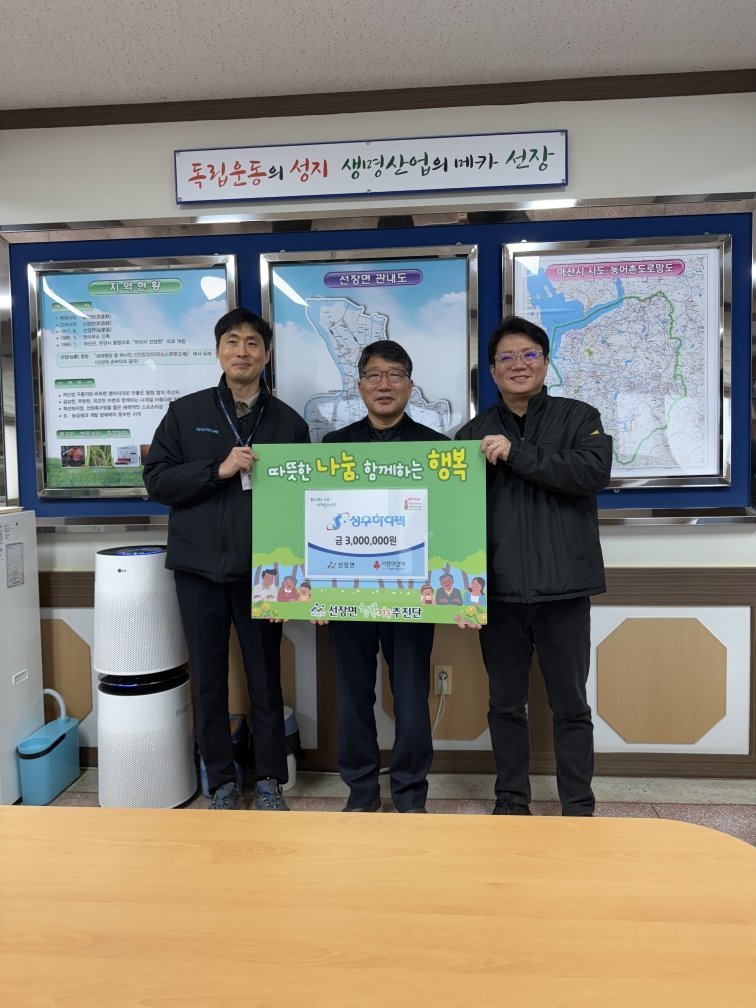 이정진 선장면장은 “아산성우하이텍 임직원 여러분의 따뜻한 관심과 지속적인 나눔에 깊이 감사드린다”며 “전달된 성금은 사회복지공동모금회를 통해 도움이 필요한 이웃들에게 소중히 전달하겠다”고 전했다.