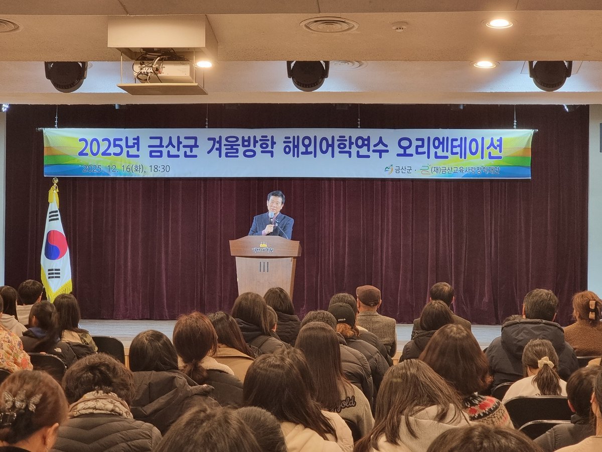 [세종타임즈] 금산군의 대표적인 글로벌 인재육성 프로그램인 초중생 해외어학연수 출발에 앞서 지난 16일 금산다락원 소공연장에서 학생과 학부모 등 160여 명을 대상으로 사전 오리엔테이션을 개최했다.