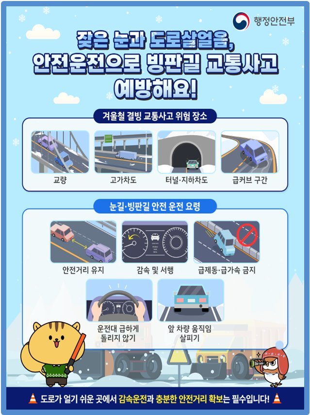[세종타임즈] 행정안전부는 겨울철에 발생하기 쉬운 빙판길 교통사고에 각별한 주의를 요청했다.