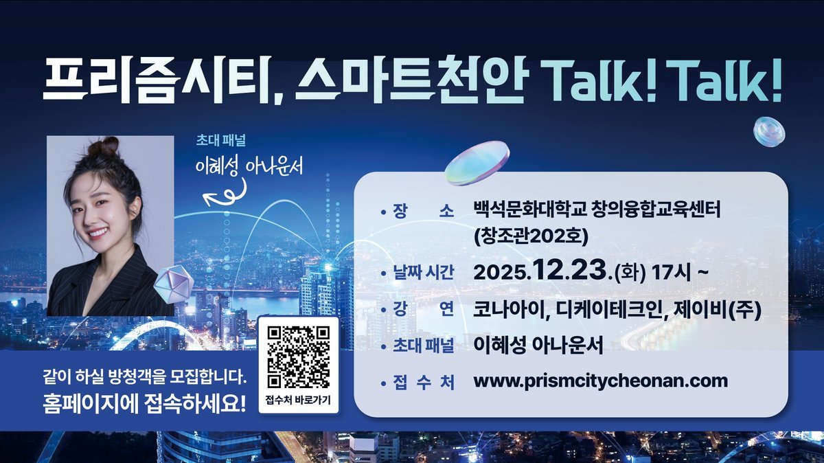 참여신청은 프리즘시티 천안 공식 누리집에서 가능하며, 현장에 참석한 참가자 전원에게는 소정의 기념품이 제공된다.