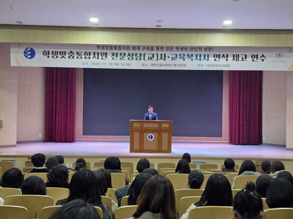 [세종타임즈] 대전교육청과 서부교육지원청은 12월 18일 대전교육과학연구원 대강당에서 초․중․고 전문상담교사, 전문상담사, 교육복지사 250여 명을 대상으로 학생맞춤통합지원 인식 제고 연수를 실시했다고 밝혔다.