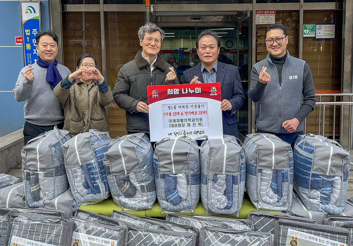 [세종타임즈] 대전 대덕구 법1동은 17일 미래재활의학과의원이 법1동 취약계층의 따뜻한 겨울나기를 지원하기 위해 이불, 전기매트를 각각 15개씩 기탁했다고 밝혔다.