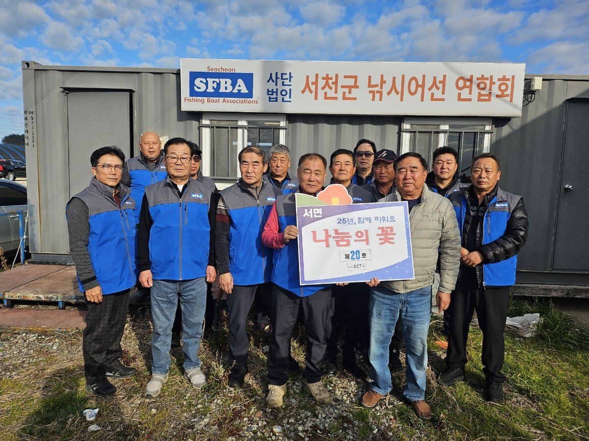 [세종타임즈] 서천군 낚시어선 연합회는 지난 19일 서면사랑후원회에 후원금 100만 원을 기부하며 서면 ‘나눔의 꽃 20호’로 선정됐다.