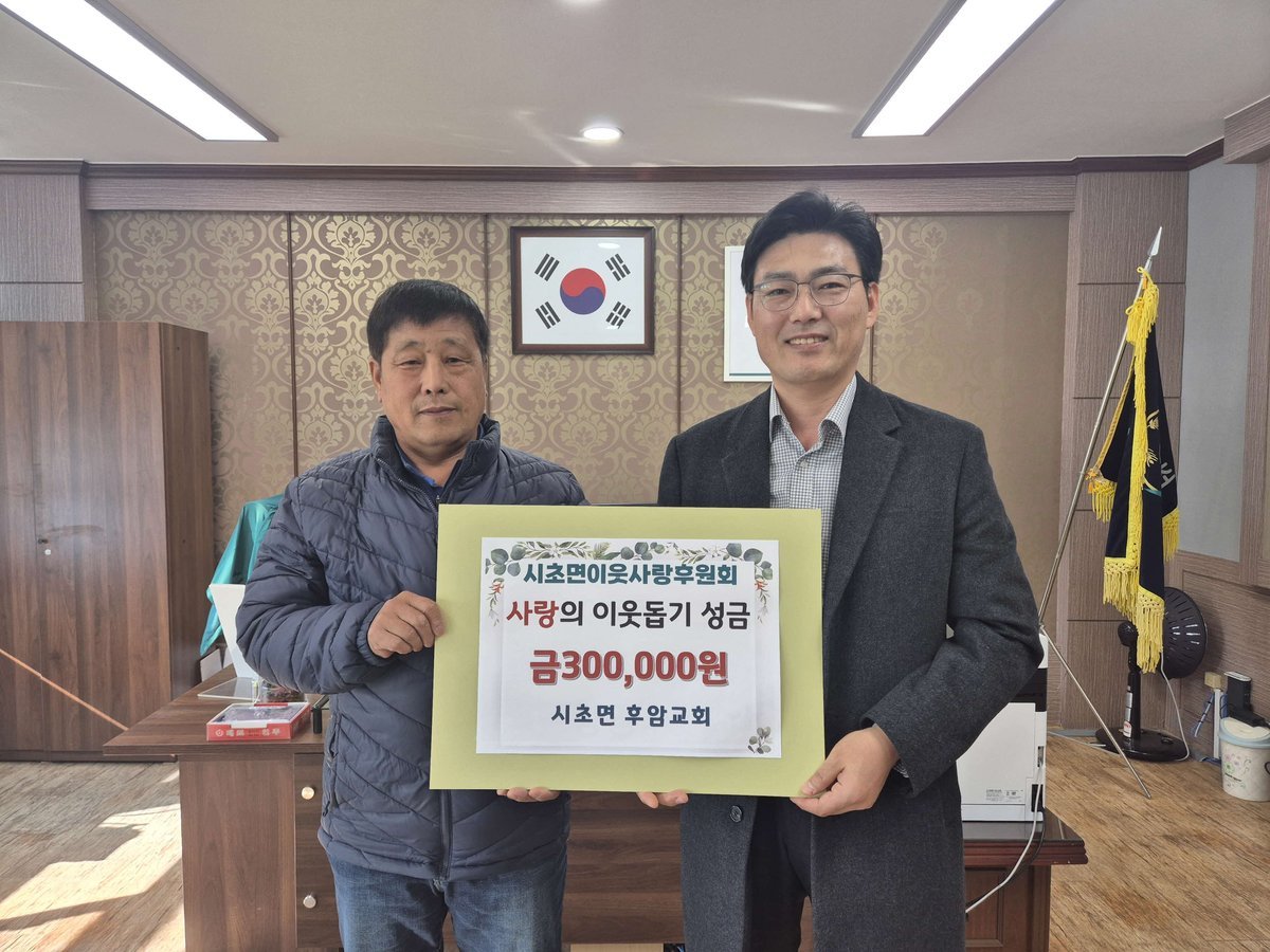 [세종타임즈] 시초면이웃사랑후원회는 시초면 소재 후암교회와 참사랑교회가 교인들의 정성을 모아 잇따라 성금을 기탁하며 지역사회에 따뜻한 나눔을 전했다고 밝혔다.