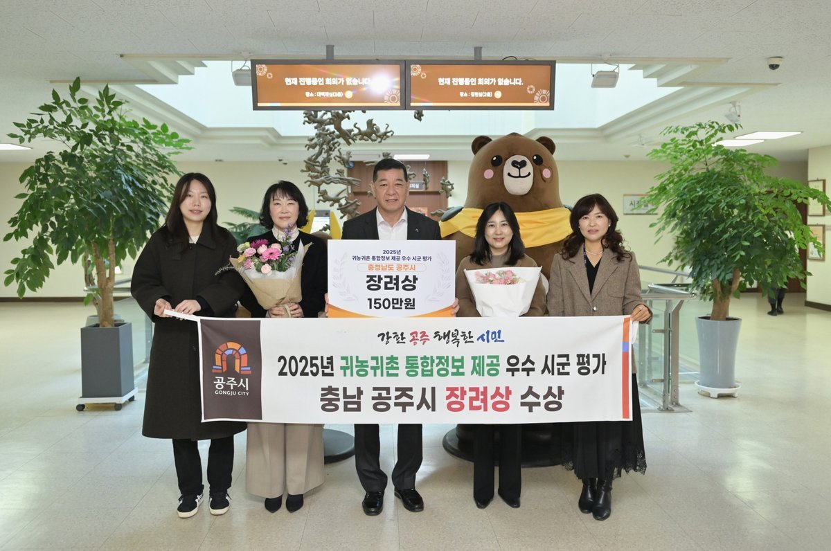 [세종타임즈] 공주시는 농림축산식품부가 주관한 ‘2025년 귀농귀촌 통합정보 제공 우수 시군 평가’에서 전국 6위를 기록해 2년 연속 장려상을 받았다고 23일 밝혔다.
