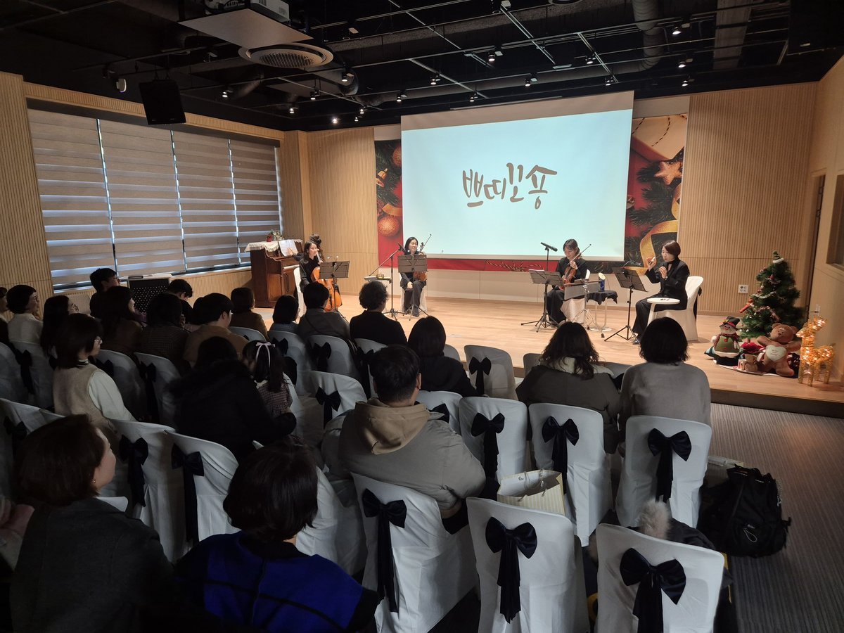 행사에서는 앙투완느 길로페 작가의 그림책 ‘누가 산타에게 선물을 준걸까?’와 김미희 작가의 ‘지우개유령’을 주제로 한 클래식 앙상블 ‘쁘띠꼬숑’의 내레이션과 연주가 이어져 감동을 선사했다.