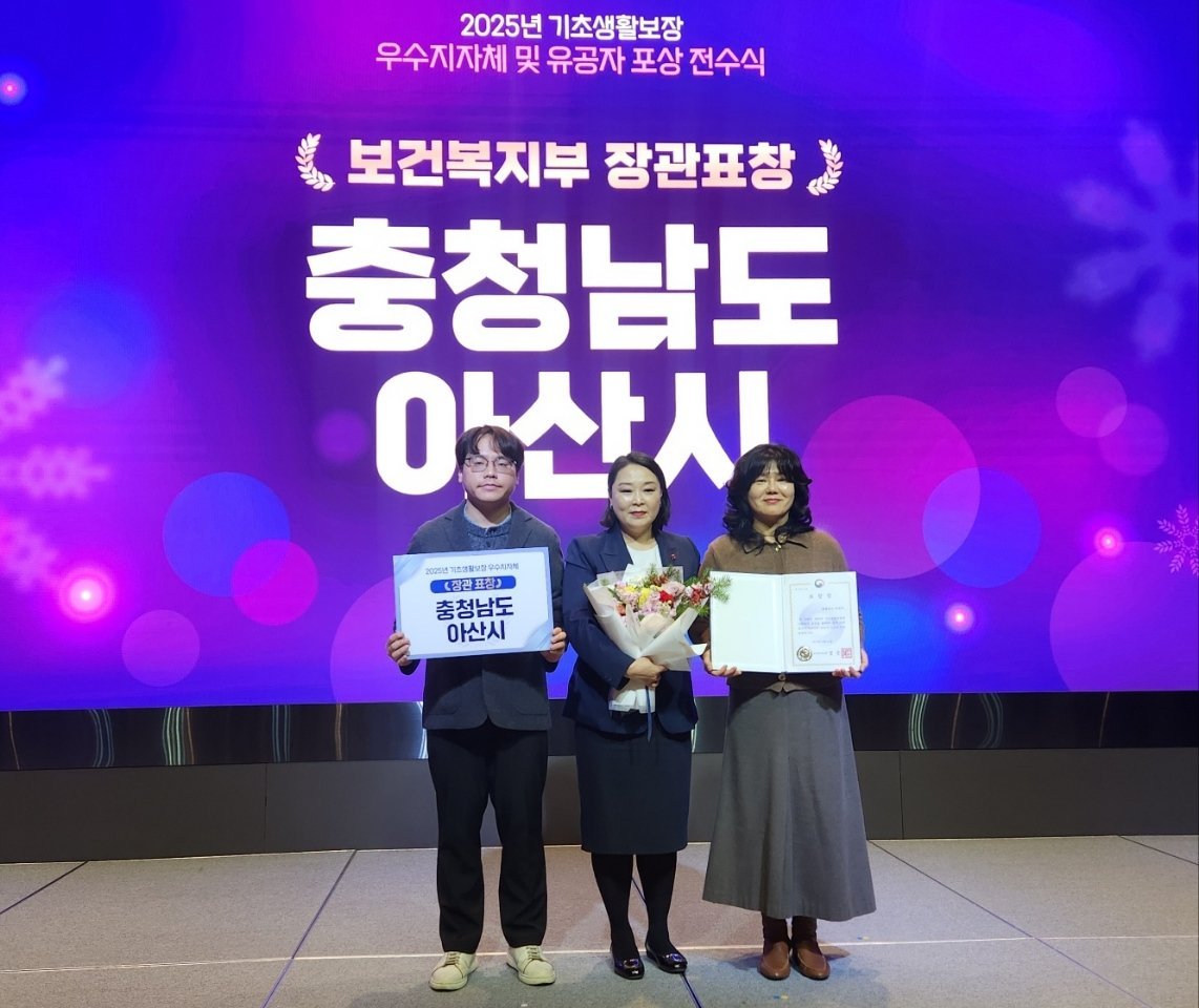 [세종타임즈] 아산시는 보건복지부에서 주관하는 ‘2025년도 기초생활보장 분야’에서 우수 지자체로 선정돼 장관 표창을 받았다고 밝혔다.