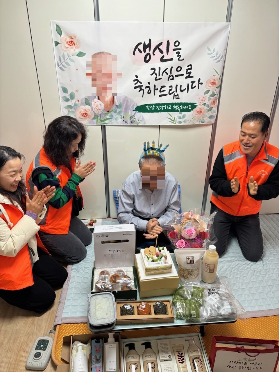 생신을 맞이한 어르신은 “챙겨주는 사람도 없는데 이렇게 생일을 축하해주고 선물도 챙겨줘서 얼마나 기쁘고 고마운지 모른다”고 말하며 감동을 전했다.