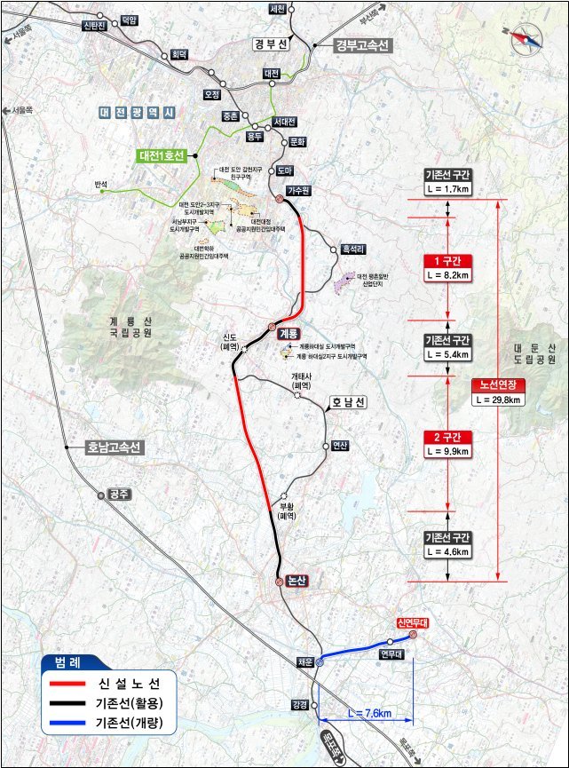 이번 사업은 총사업비 약 9천 2백억원을 투입하여 대전 가수원역에서 논산역까지의 굴곡진 노선을 직선화하고, 기존 노후 시설도 정비하여 250km/h의 고속 주행이 가능한 선로로 개량하는 국책 사업이다.