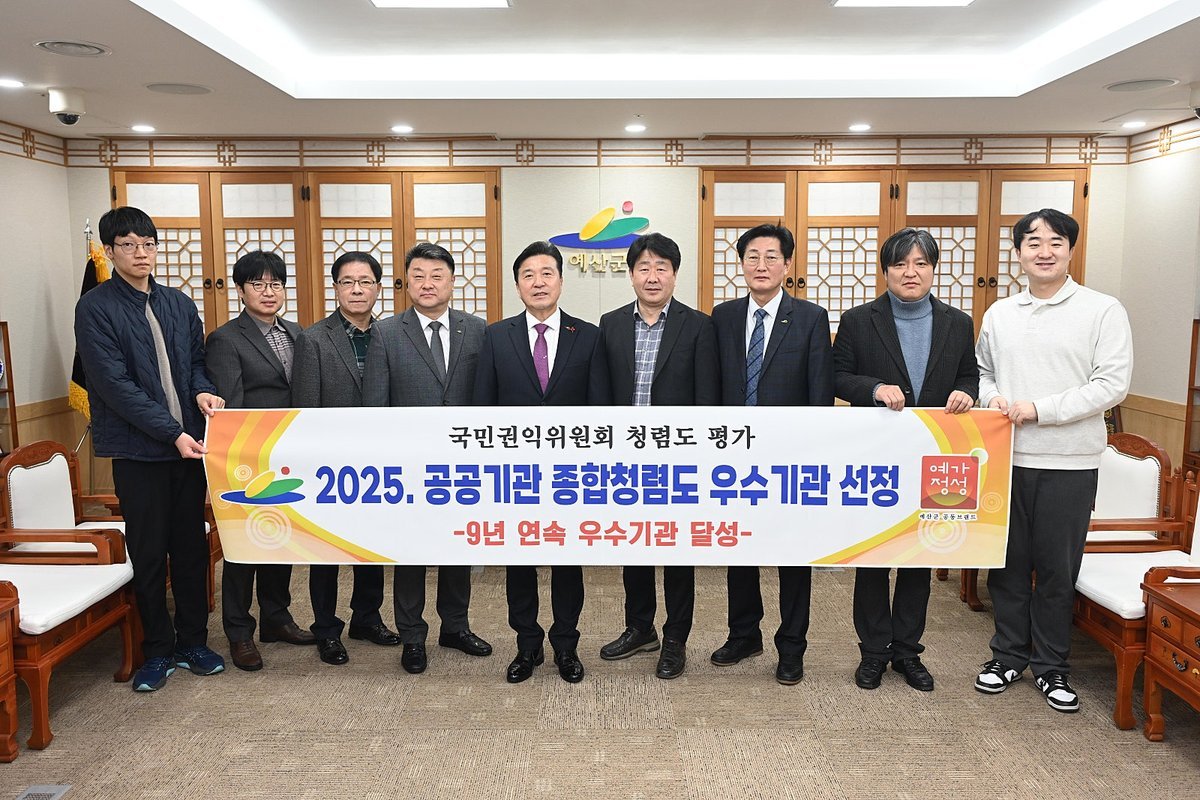 [세종타임즈] 예산군은 국민권익위원회가 주관한 ‘2025년도 공공기관 청렴도 평가’에서 종합청렴도 2등급을 획득하며 9년 연속 우수기관을 달성했다고 밝혔다.