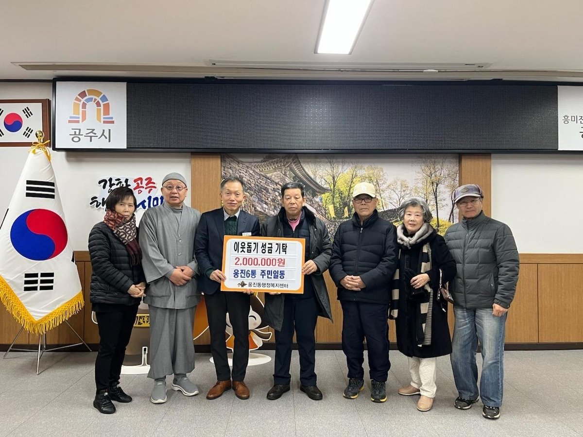 [세종타임즈] 공주시 웅진동은 지난 23일 웅진6통 주민들이 행정복지센터를 찾아 지역 내 취약계층을 돕기 위한 성금 200만 원을 기탁하며 따뜻한 나눔을 실천했다고 밝혔다.