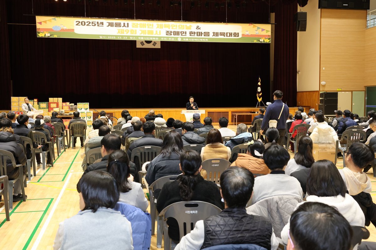 [세종타임즈] 계룡시는 23일 계룡시민체육관에서 장애인 체육 종목단체 선수, 임원 등 250여 명이 참석한 가운데 ‘2025 장애인 체육인의 날 및 한마음 체육대회’를 성황리에 개최했다.
