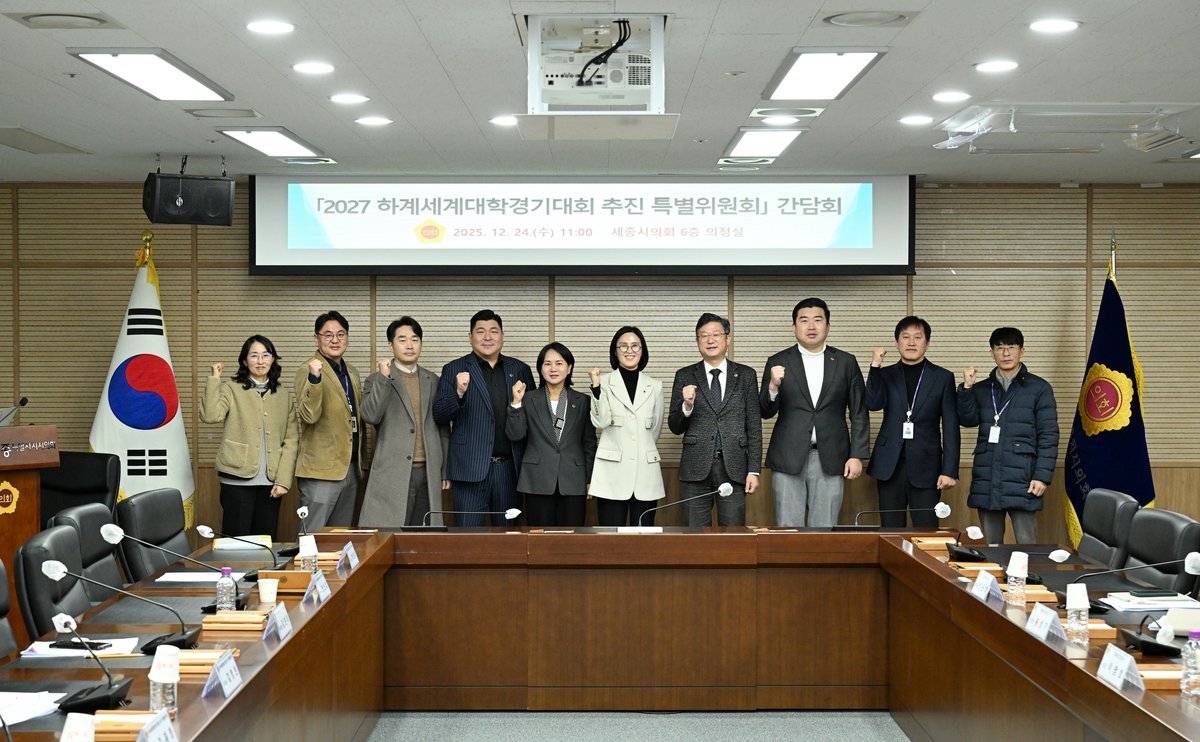 [세종타임즈] 세종특별자치시의회 2027 하계세계대학경기대회 추진 특별위원회는 24일 간담회를 개최하고, 선수촌 건립 및 유도장 조성 등 대회 준비 전반의 추진상황을 보고받은 후 주요 현안을 논의했다.