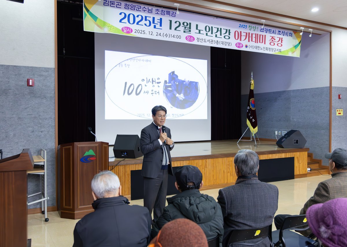 [세종타임즈] 대한노인회 청양군지회는 지난 24일 정산도서관 대강당에서 정산, 목, 청남, 장평 프로그램 참여자 및 관계자 등 100여 명이 참석한 가운데 ‘노인건강아카데미 종강식’을 성황리에 개최했다.