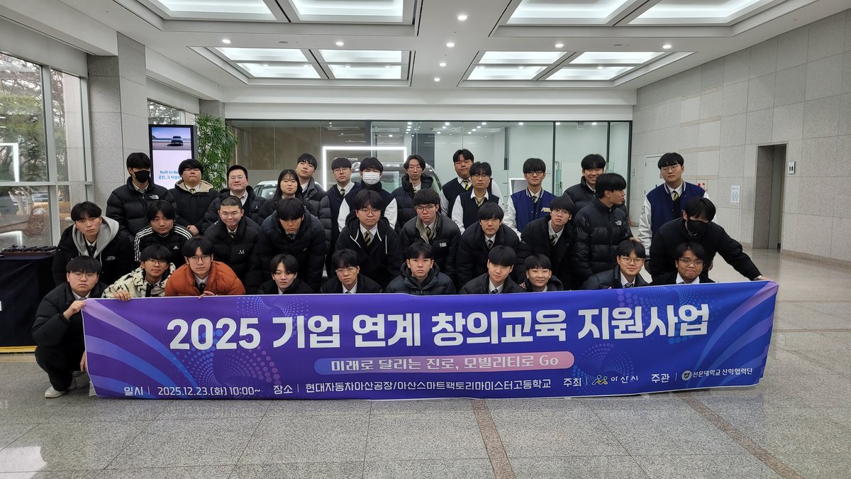 [세종타임즈] 아산스마트팩토리마이스터고 는 23일 현대자동차 아산공장에서 2 학년 68명 학생들이 “선문대학교 2025년 기업 연계 창의 교육 지원사업 ”의 일환으로 추진되는 「 현대자동차 아산공장 견학 및 ‘미래로 달리는 진로, 모빌리티로 Go!’모빌리티 진로 교육 」 프로그램에 참여했다고 전했다.