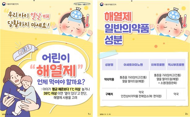 [세종타임즈] 식품의약품안전처 소속 식품의약품안전평가원은 겨울철에는 고열이 동반된 감기 및 독감 환자의 해열제 사용이 늘어남에 따라, 소아 해열제의 올바른 사용방법을 안내한다고 밝혔다.