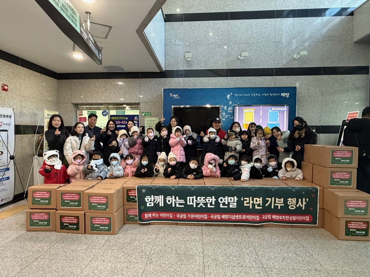 [세종타임즈] 배방읍 소재 어린이집 3곳이 지난 26일 배방읍 행복키움추진단에 라면 51상자를 기부하며 이웃 사랑을 실천했다.