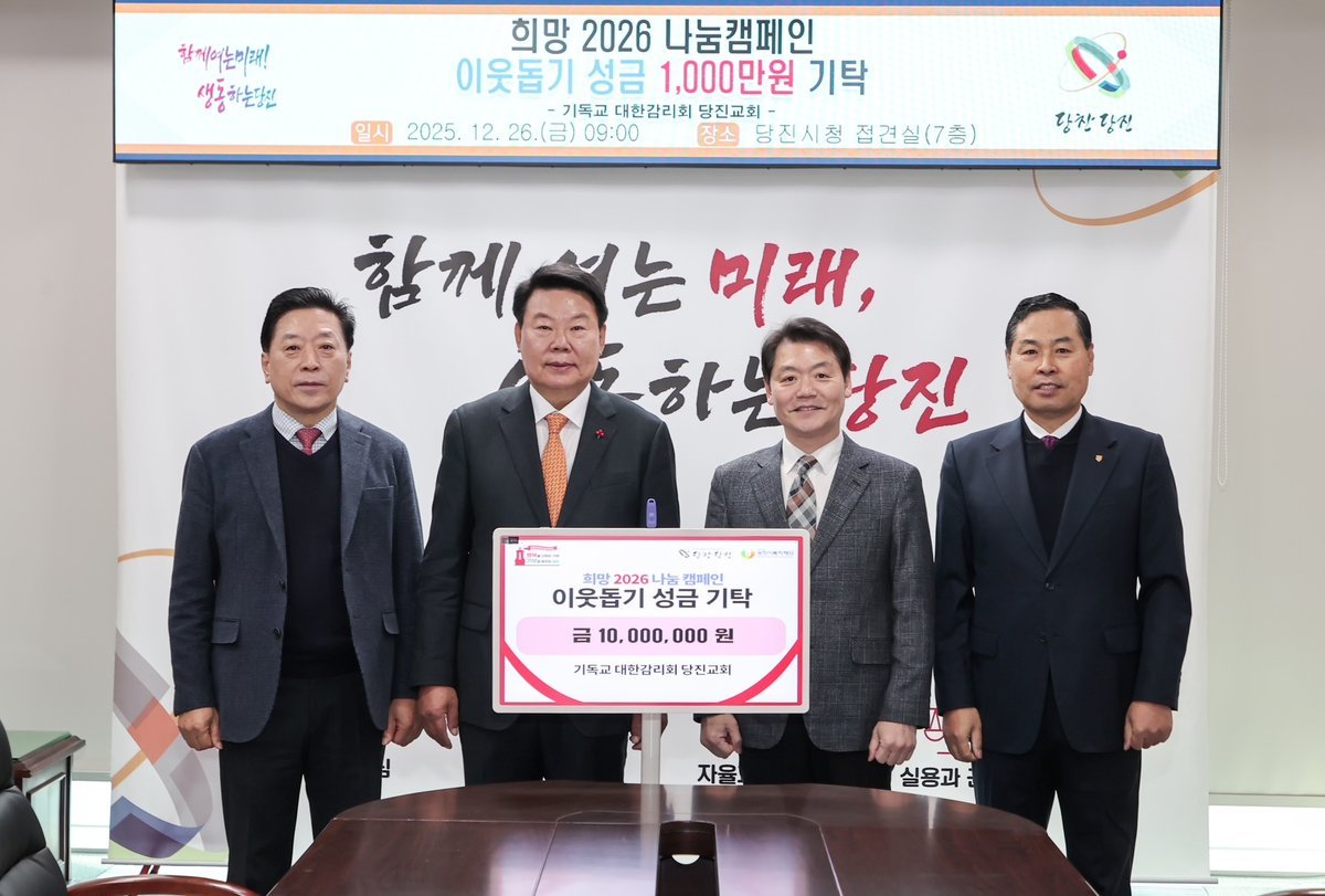 [세종타임즈] 당진시는 12월 26일 오전, 기독교대한감리회 당진교회가 당진시청을 방문해 ‘희망2026 나눔캠페인’이웃돕기 성금 1천만 원을 기탁했다고 밝혔다.