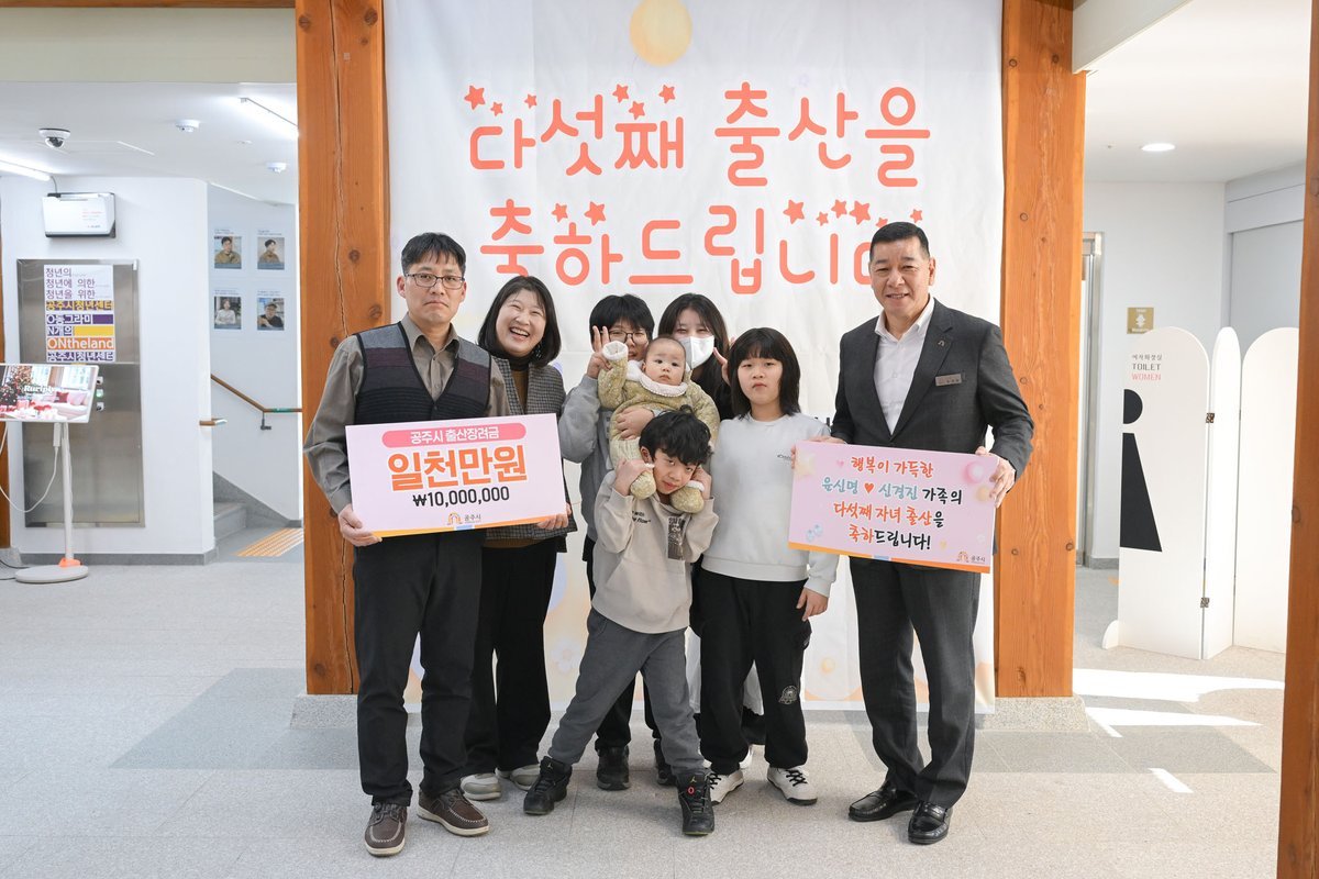 최원철 시장은 “다섯째 아이의 탄생은 한 가정의 경사이자 우리 지역사회 전체가 축하해야 할 소중한 일”이라며 “새로운 가족을 맞이한 기쁨이 오래도록 이어질 수 있도록 공주시는 앞으로도 다양한 출산·양육 지원 정책을 꾸준히 확대해 나가겠다”고 말했다.