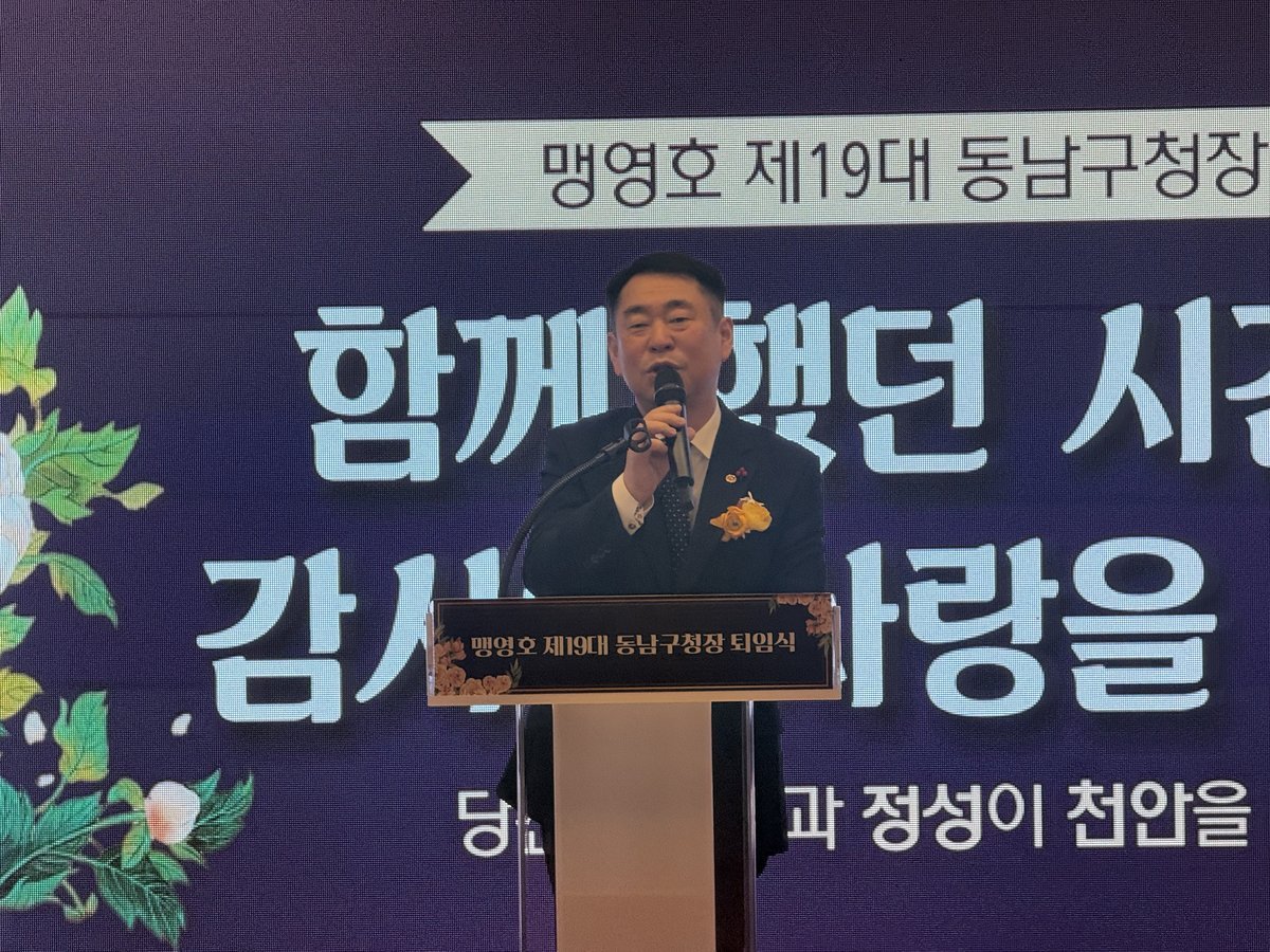 맹 구청장은 29일 동남구청에서 열린 퇴임식에서 “반성도 있지만 35년간 열심히 해왔다고 자부한다”고 소회를 밝혔다.