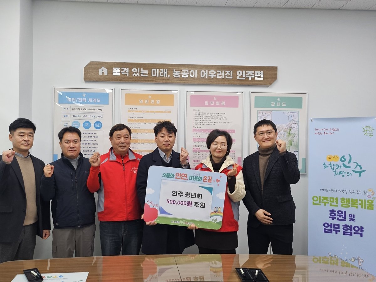 송경숙 인주면장은 “지역사회를 위해 자발적으로 나눔에 동참해 주신 인주청년회에 감사드린다”며 “이러한 선한 영향력이 인주면을 더욱 따뜻한 공동체로 만들어가고 있다”고 전했다.