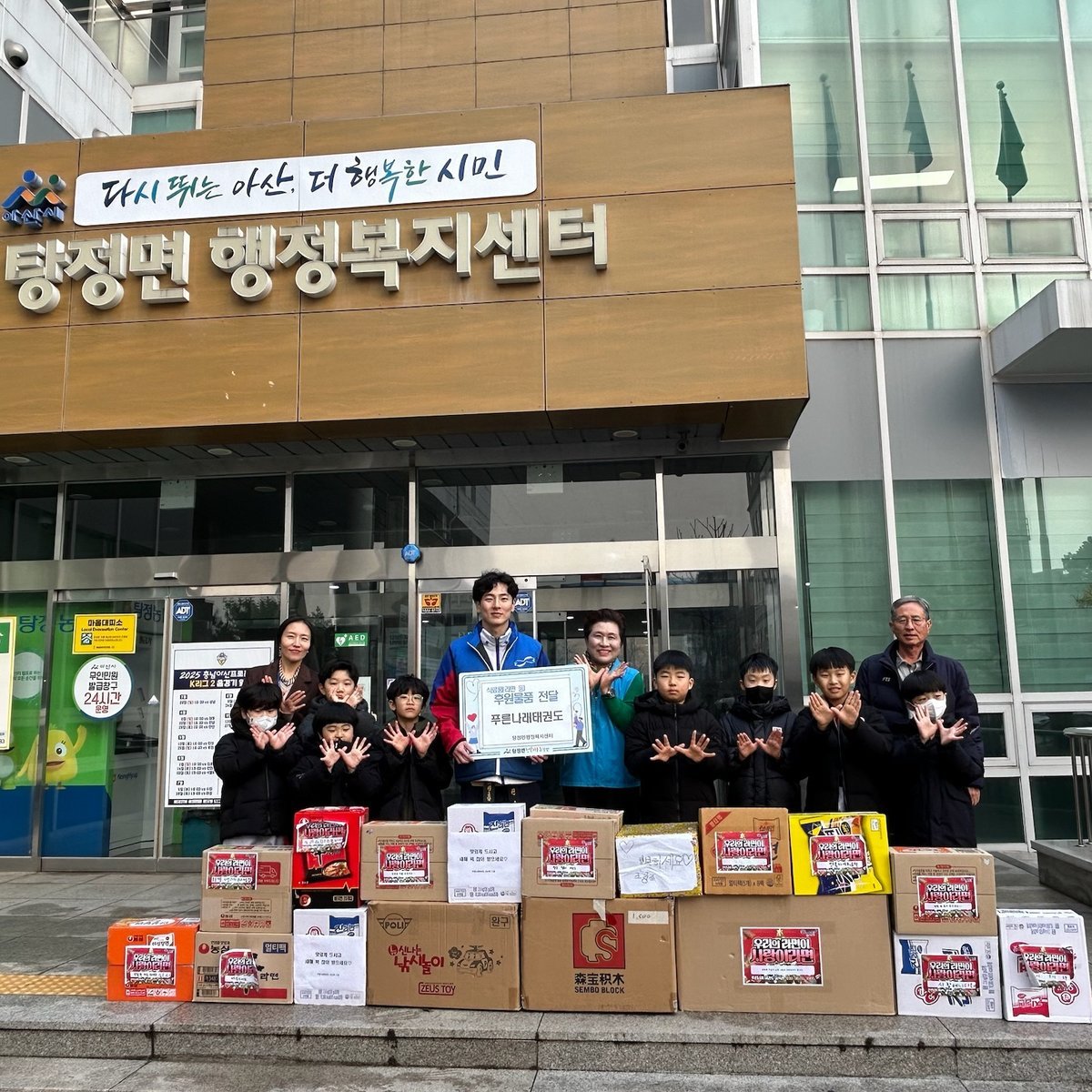 [세종타임즈] 푸른나래태권도 교육관은 원생들과 함께 마련한 후원 물품을 지난 29일 아산시 탕정면 행복키움추진단에 전달했다.