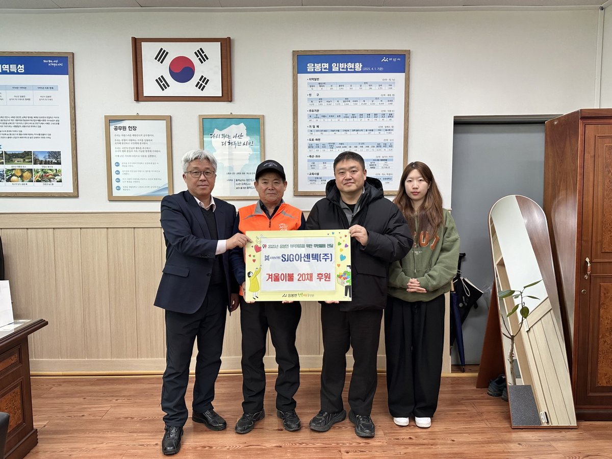 [세종타임즈] SJG아센텍㈜은 지난 30일 아산시 음봉면 행복키움추진단에 지역 내 취약계층을 위한 겨울이불 20채를 후원했다.