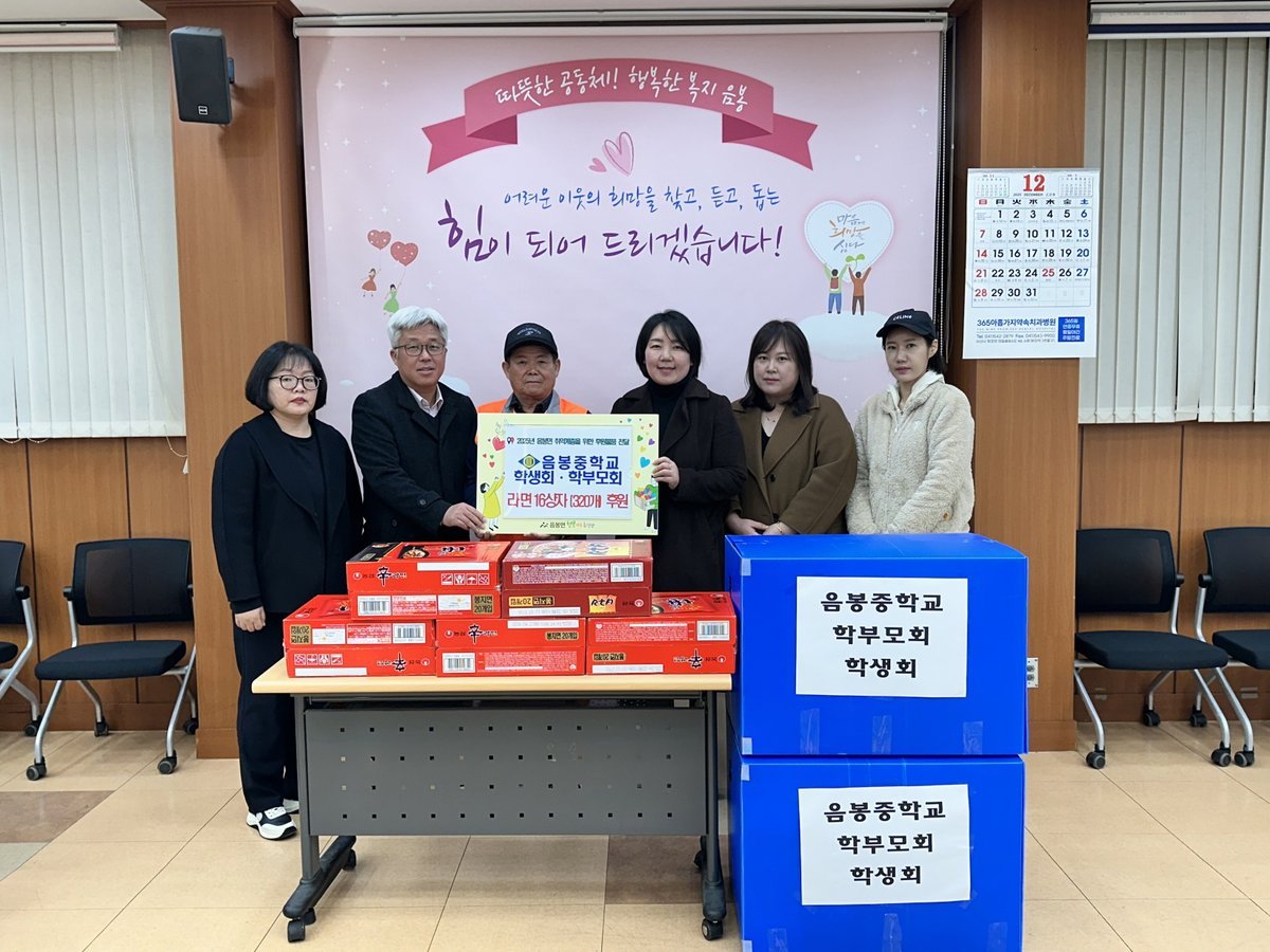 이번 후원은 학생과 학부모가 함께 뜻을 모아 나눔의 가치를 실천하고자 마련됐으며, 전달된 물품은 음봉면 행복키움추진단을 통해 관내 저소득 취약계층 등 도움이 필요한 이웃들에게 전달될 예정이다.