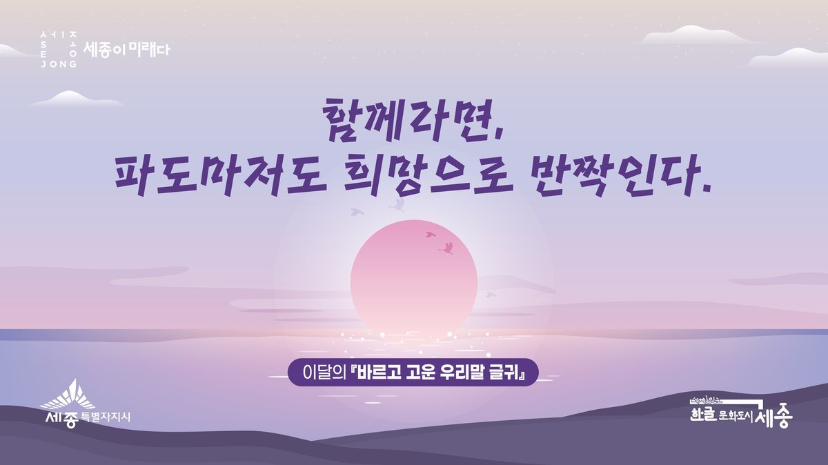 [세종타임즈] 세종특별자치시가 시민 참여로 선정한 2026년 1∼2월 ‘바르고 고운 우리말 글귀’를 발표했다.