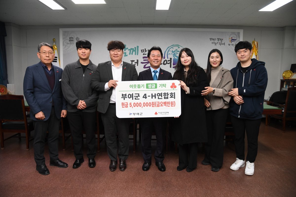 [세종타임즈] 부여군 농업의 미래를 이끌어가는 청년 농업인 학습단체인 부여군 4-H 연합회가 연말을 맞아 어려운 이웃을 위한 이웃돕기 성금 500만 원을 기탁했다고 2일 밝혔다.