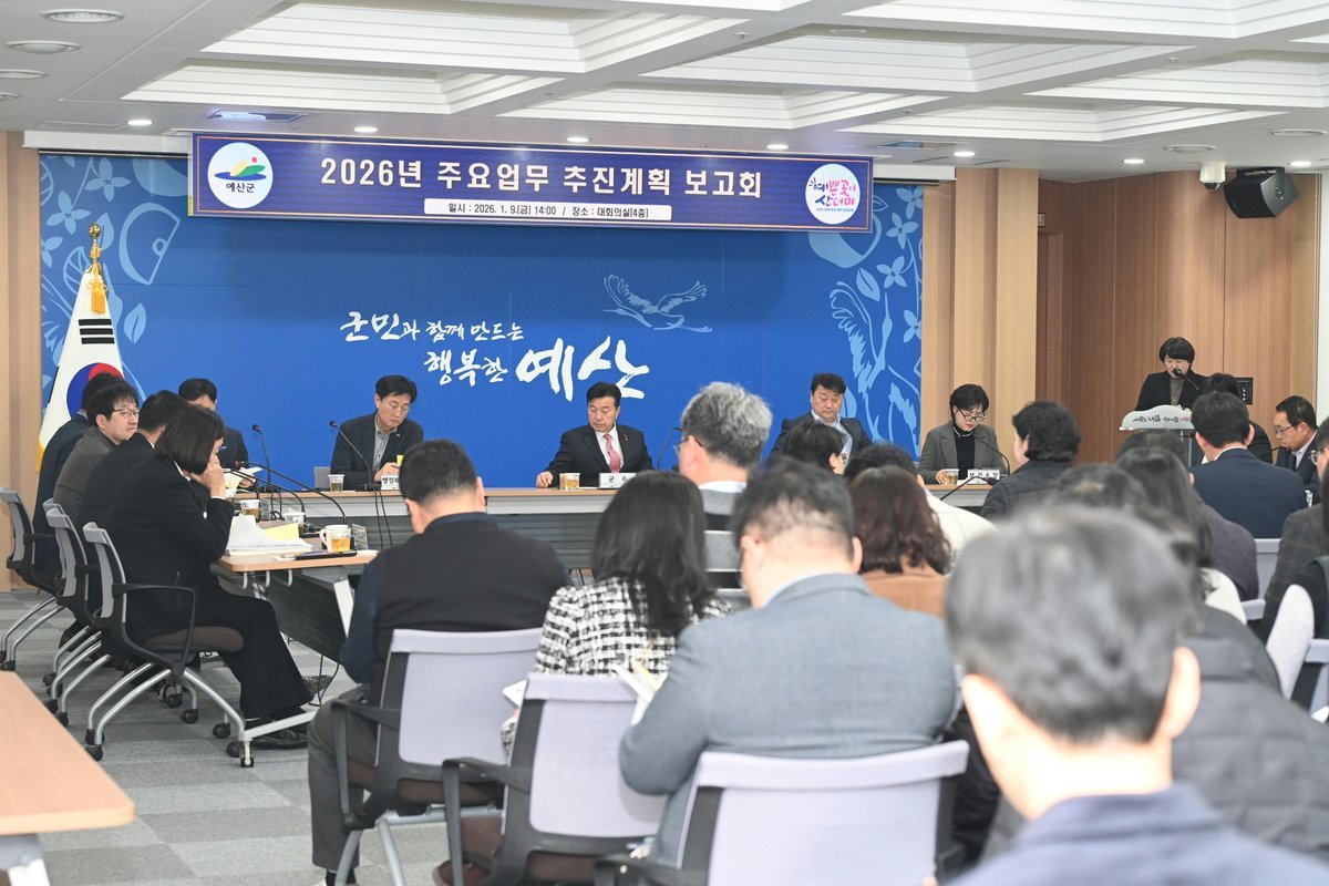 [세종타임즈] 예산군은 9일 군청 대회의실에서 '2026년도 주요업무 추진계획 보고회'를 열고 향후 군정 운영 방향과 분야별 주요 시책을 공유했다.