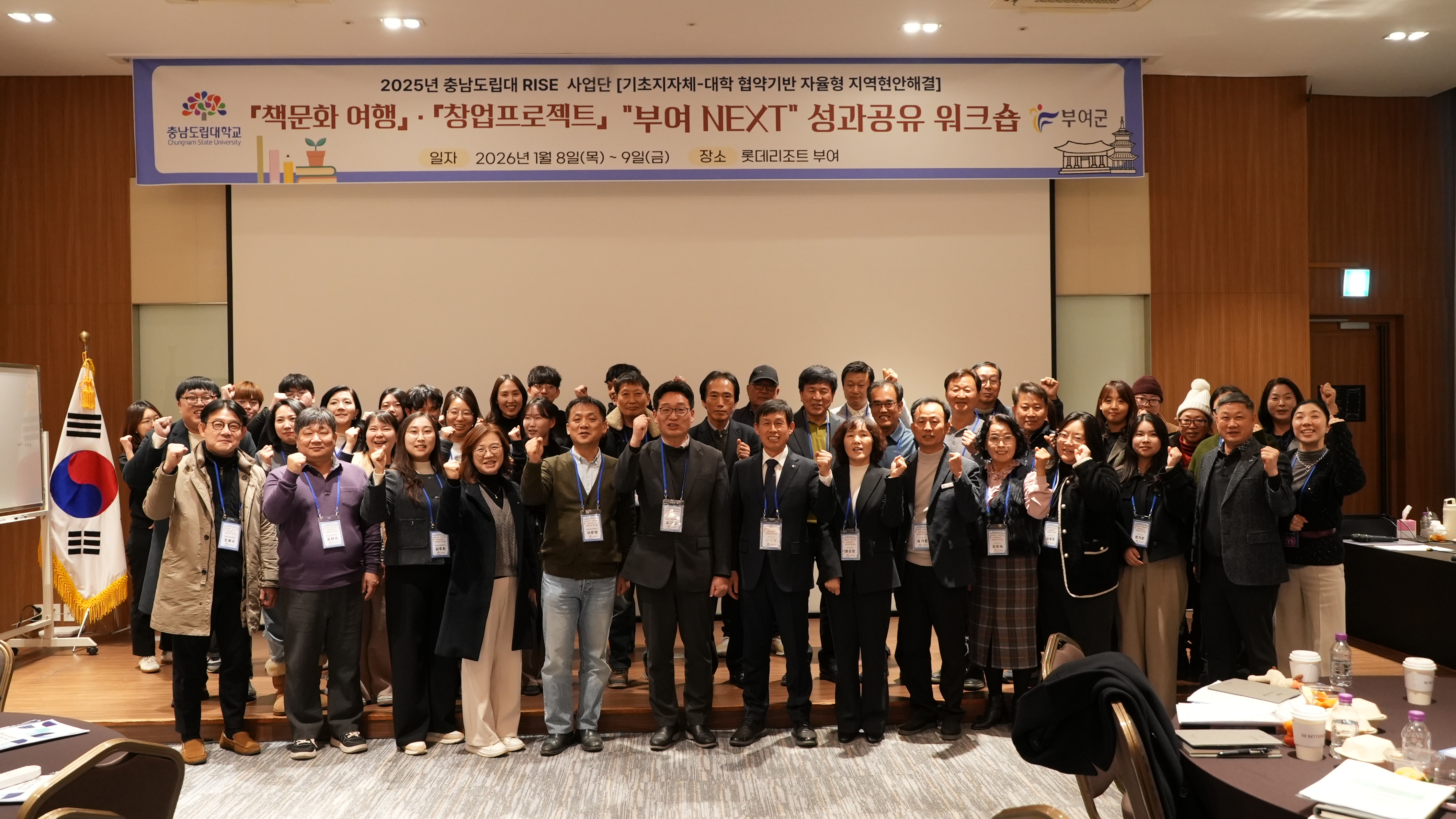 충남도립대학교 라이즈사업단은 지난 8일부터 9일까지 이틀간 부여롯데리조트 금동룸에서 ‘부여군–충남도립대학교 지역현안 해결 프로젝트 부여 NEXT 성과공유 워크숍’을 개최했다.