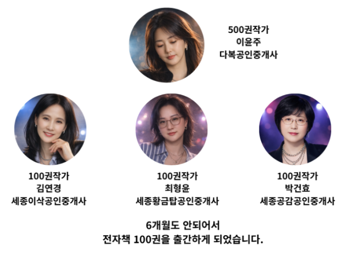 이번 성과의 주인공은 세종시 공인중개사 김연경, 최형윤, 박건효다. 이들은 모두 출판 경험이 전무한 상태에서 출발했지만, 체계적인 시스템을 기반으로 단기간에 대량 출간이라는 성과를 이뤄냈다.