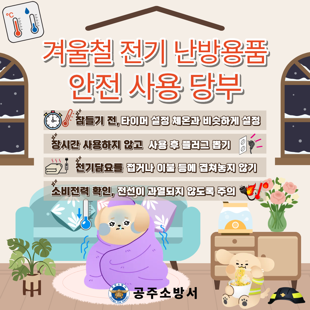 오긍환 소방서장은 “전기 난방용품 사용 과정에서의 사소한 부주의가 대형 화재로 이어져 인명과 재산 피해를 초래할 수 있다”며 “시민들께서는 기본적인 안전수칙을 철저히 지켜 남은 겨울철을 보다 따뜻하고 안전하게 보내시길 바란다”고 말했다.