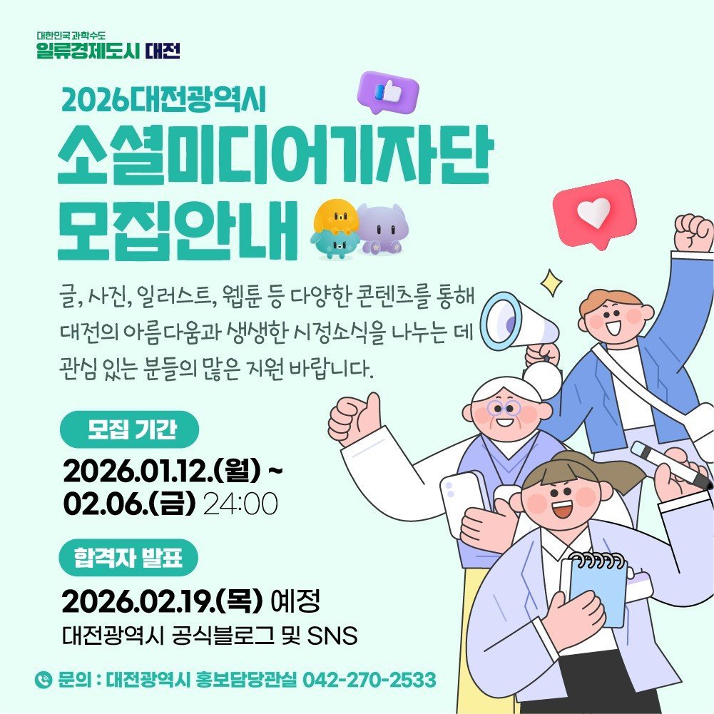 [세종타임즈] 대전시는 참신한 아이디어와 열정을 가지고 꿀잼도시 대전의 매력을 알릴‘2026 대전광역시 소셜미디어기자단’및‘2026 대전광역시 글로벌 서포터즈’를 모집한다.