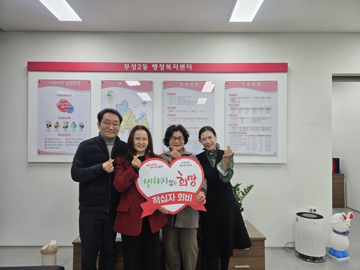 장현숙 부성2동장은 “성금은 지역사회에 큰 힘이 될 것”이라며 “나눔을 실천해주신 어르신들의 마음에 감사드린다”고 말했다.