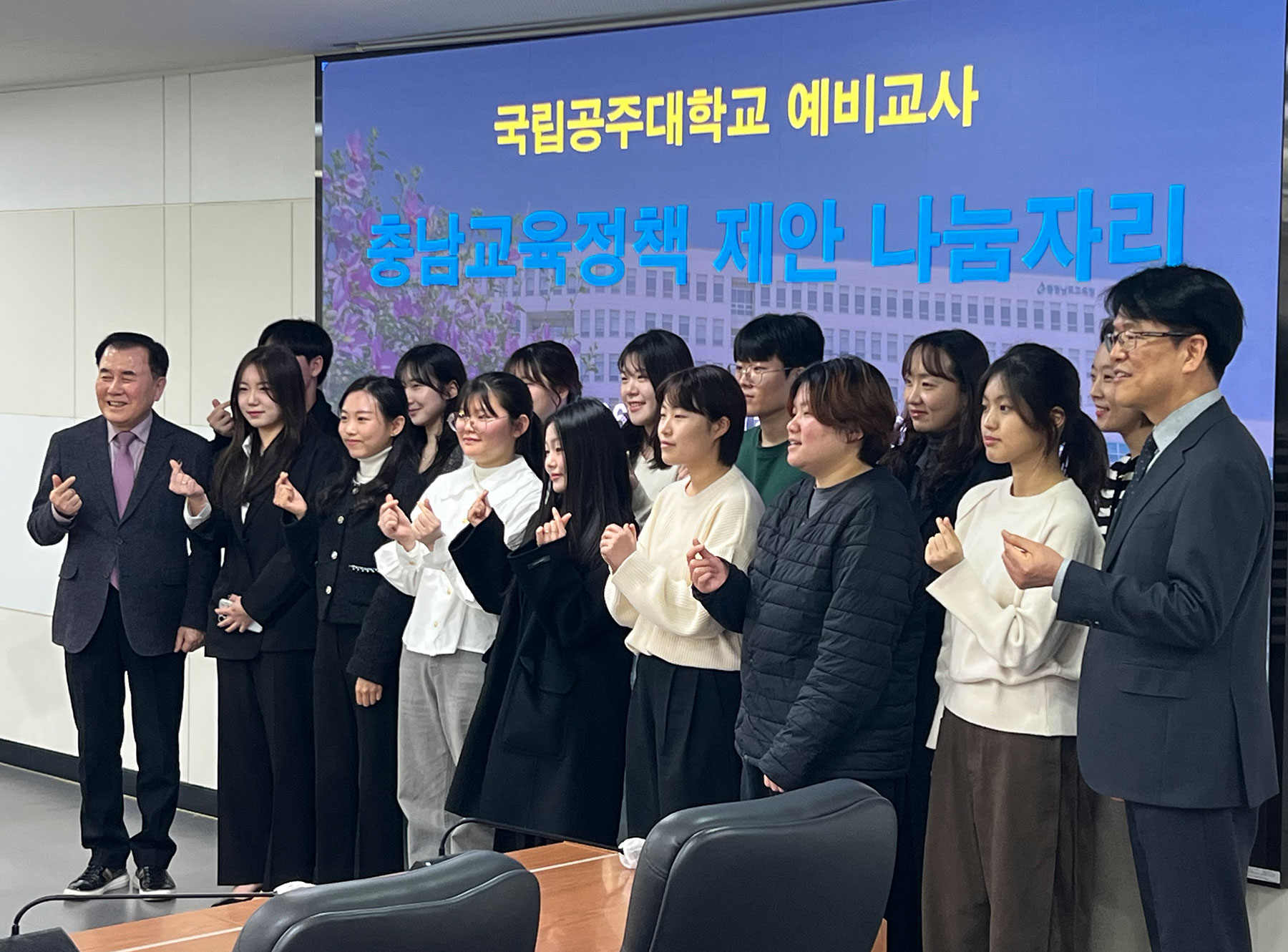 [세종타임즈] 국립공주대학교(총장 임경호)와 충청남도교육청(교육감 김지철)은 지난 13일 충청남도교육청 제1회의실에서 사범대학 학생과 관계자들이 참석한 가운데 ‘2026 예비교사 충남교육정책 제안 나눔자리’를 개최했다.