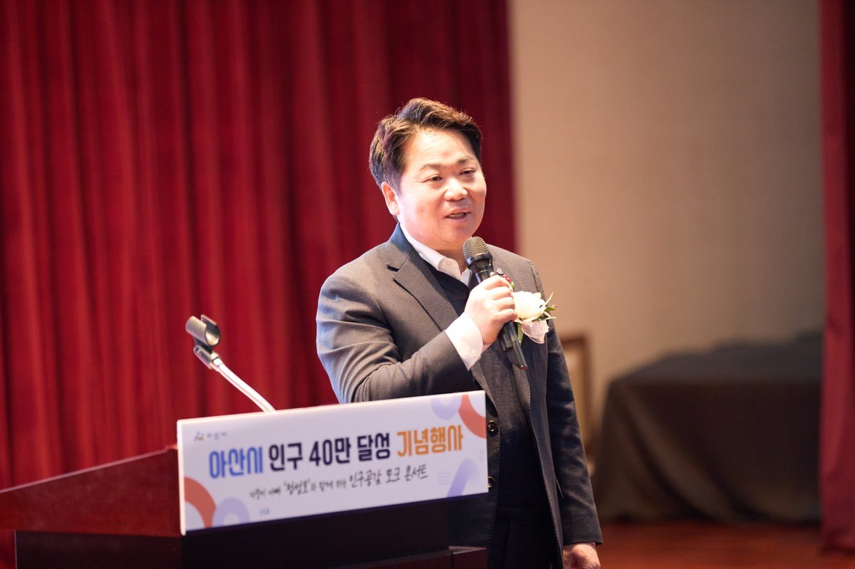 오세현 아산시장은 기념사를 통해 “인구 40만 달성은 단순한 숫자의 증가가 아니라, 아산시가 중견도시로서 규모와 기능을 갖췄음을 보여주는 분명한 전환점”이라며 “국가적으로 저출생과 지역소멸 위기 속에서도 성장하는 도시, 50만 자족도시를 준비하는 도시가 바로 아산”이라고 강조했다.