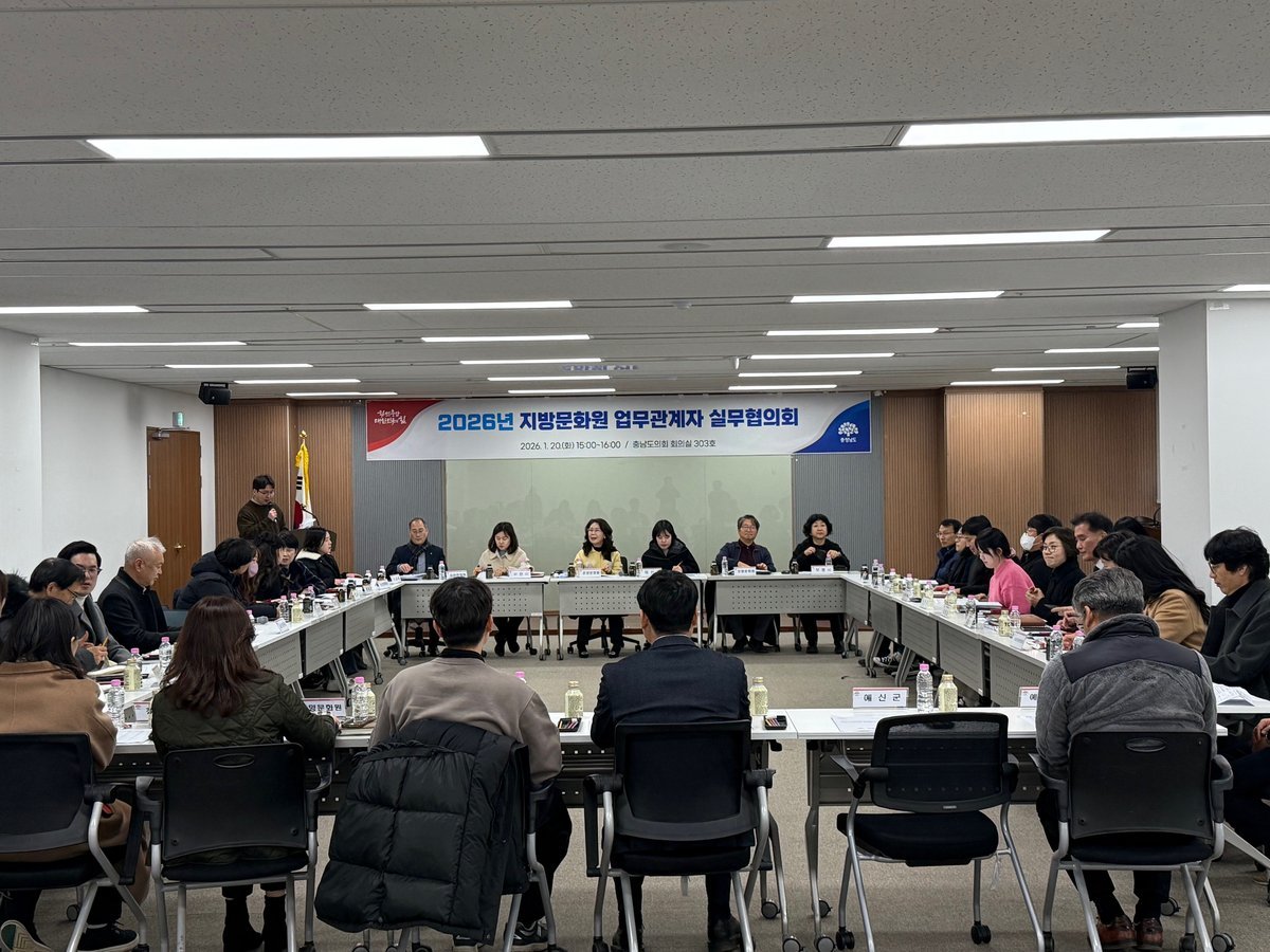 [세종타임즈] 충청남도는 20일 충남도 의회 회의실에서 도내 15개 시·군 지방문화원 직원과 담당 공무원 등 50여 명이 참석한 가운데 ‘2026년 지방문화원 업무 관계자 실무회의’를 개최했다.