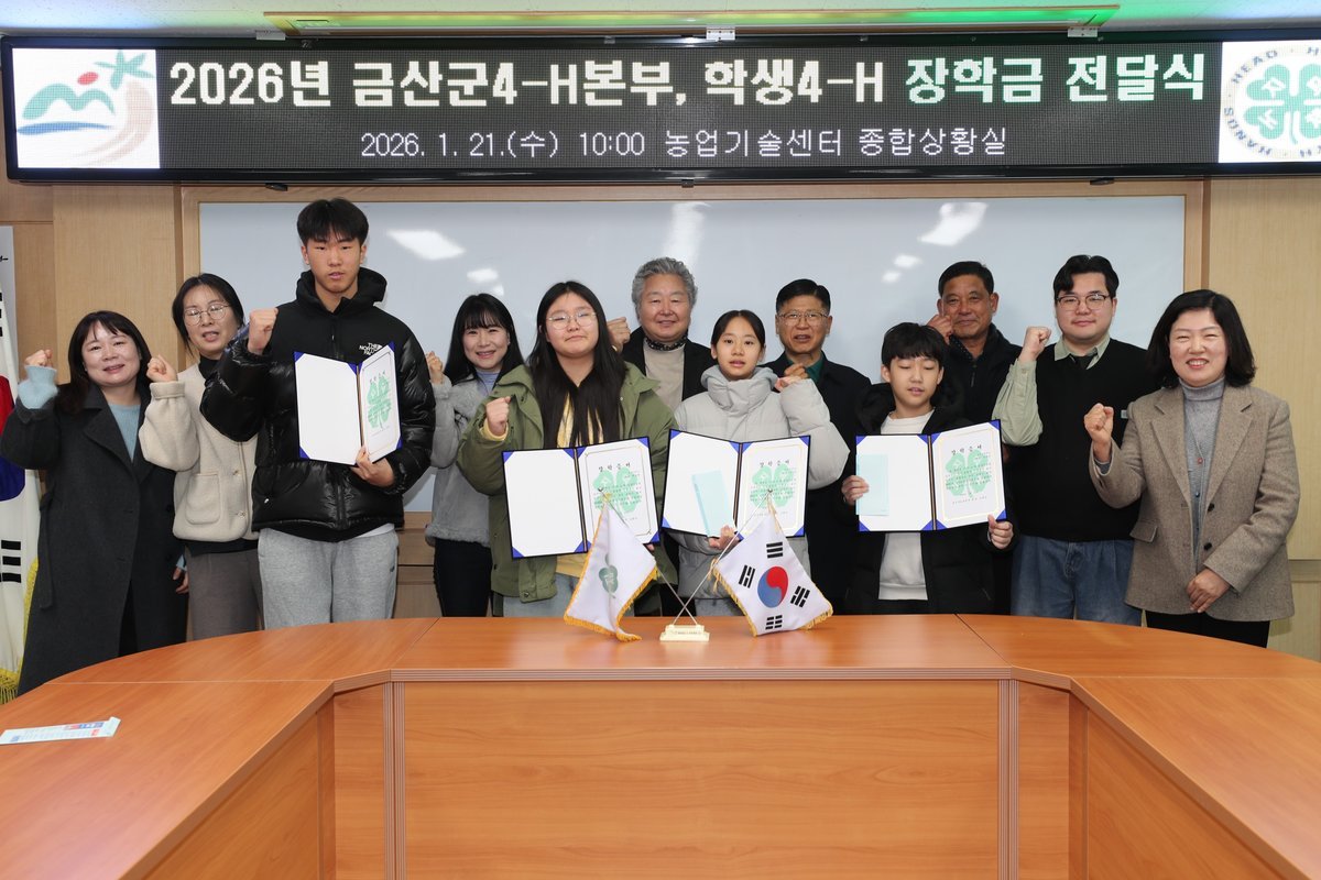오희승 금산군4-H본부 회장은 "학생4-H 회원들이 지역 농업과 농촌 발전을 이끌어 갈 미래 인재로 성장할 수 있도록 지속적인 관심과 지원을 이어가겠다"며 "이번 장학금이 학생들의 학업과 활동에 실질적인 도움이 되길 바란다"고 말했다.