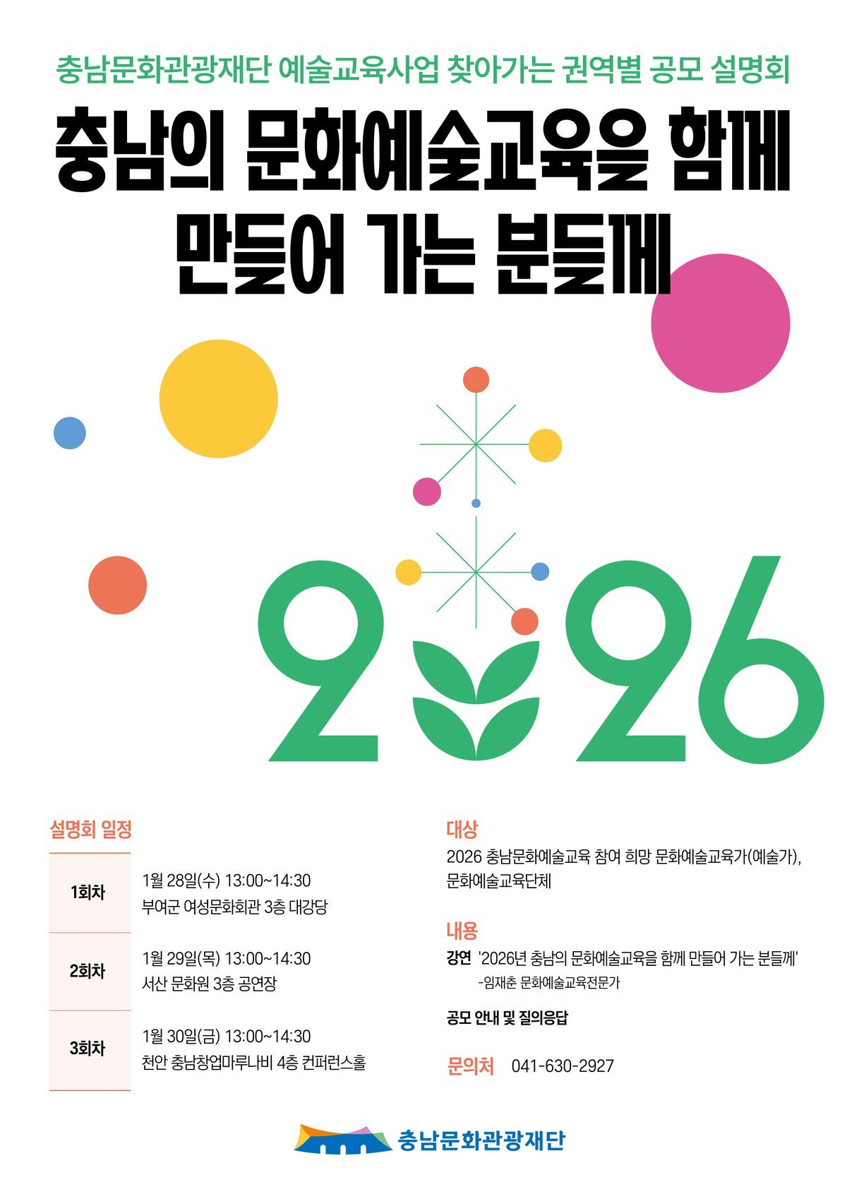 [세종타임즈] 충남문화관광재단은 2026년 도민 누구나 더 가까이, 더 깊게 누리는 충남 문화예술교육에 함께 할 도내 문화예술교육가 및 문화예술교육단체 대상 사업 공모를 오는 2월 20일까지 진행한다.