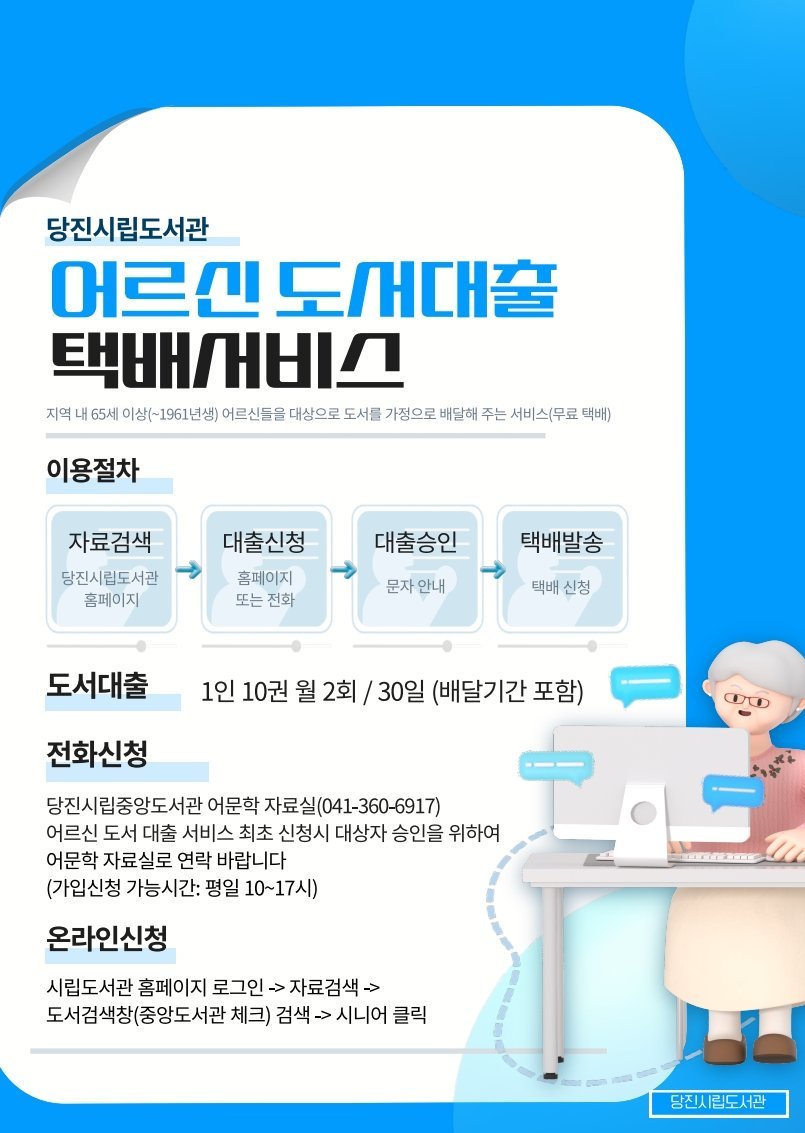 [세종타임즈] 당진시는 도서관 방문이 어려운 시민들을 위해 당진시립도서관에서 ‘맘편한 도서관 서비스’와 ‘어르신 도서 대출 택배 서비스’를 운영하고 있다고 27일 밝혔다.