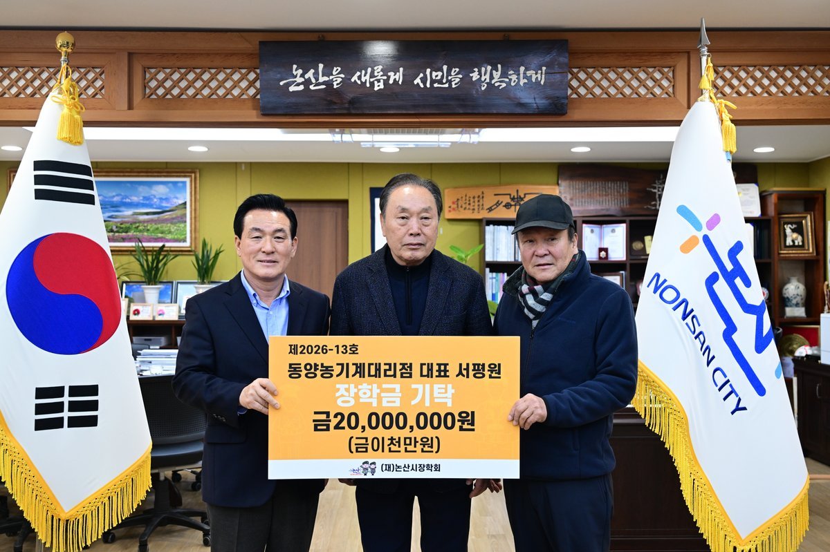 지난 26일 대교동에 위치한 동양농기계 논산시대리점에서 지역 인재 양성을 위한 장학금 2천만원을 기탁했다.
